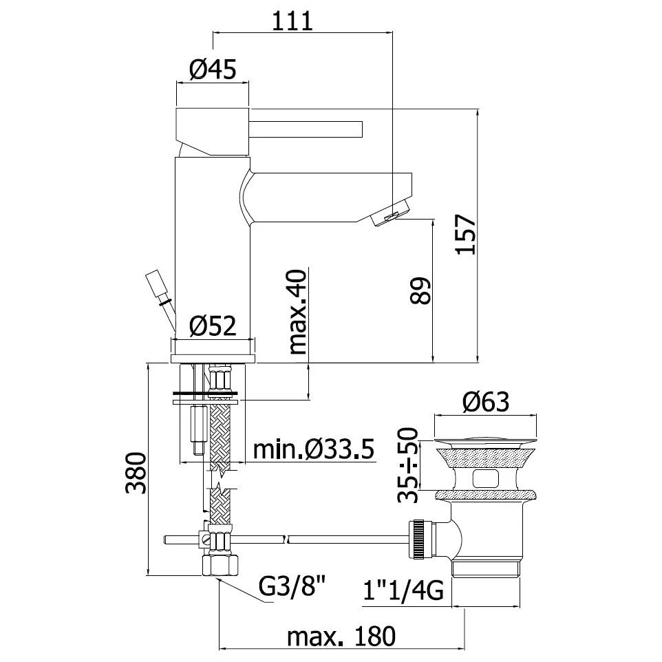 - mit Ablaufgarnitur 11/4″