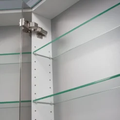 Die 5 mm starken Glaseinlegeböden sind rundum geschliffen, in der Höhe verstellbar und gegen unbeabsichtigtes Herausziehen gesichert.