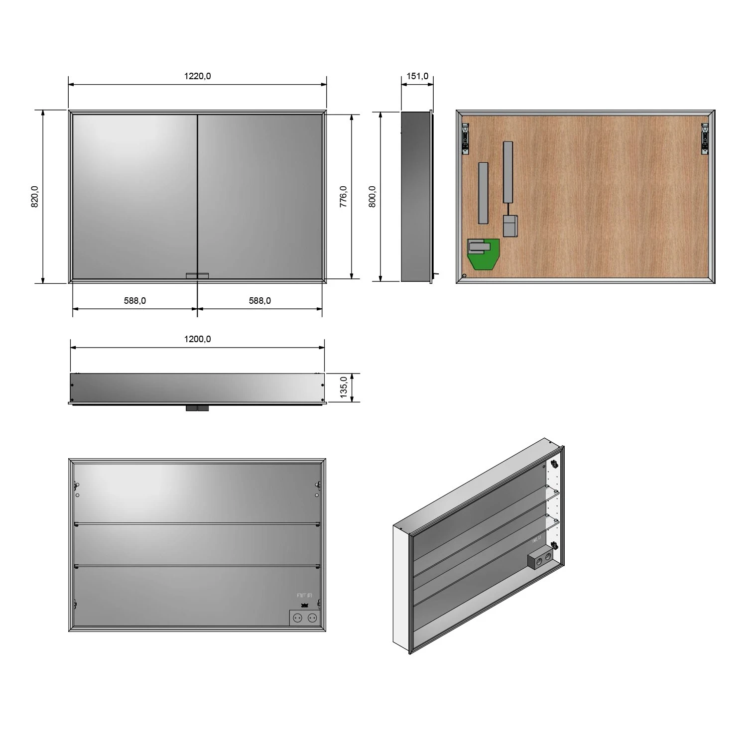 Kronenbach Cube Spiegelschrank 122 x 82 cm mit umlaufender LED-Beleuchtung, Unterputz