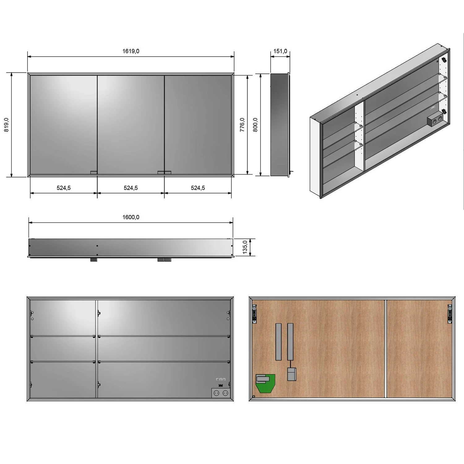 Kronenbach Cube Spiegelschrank 161,9 x 81,9 cm mit umlaufender LED-Beleuchtung, Unterputz