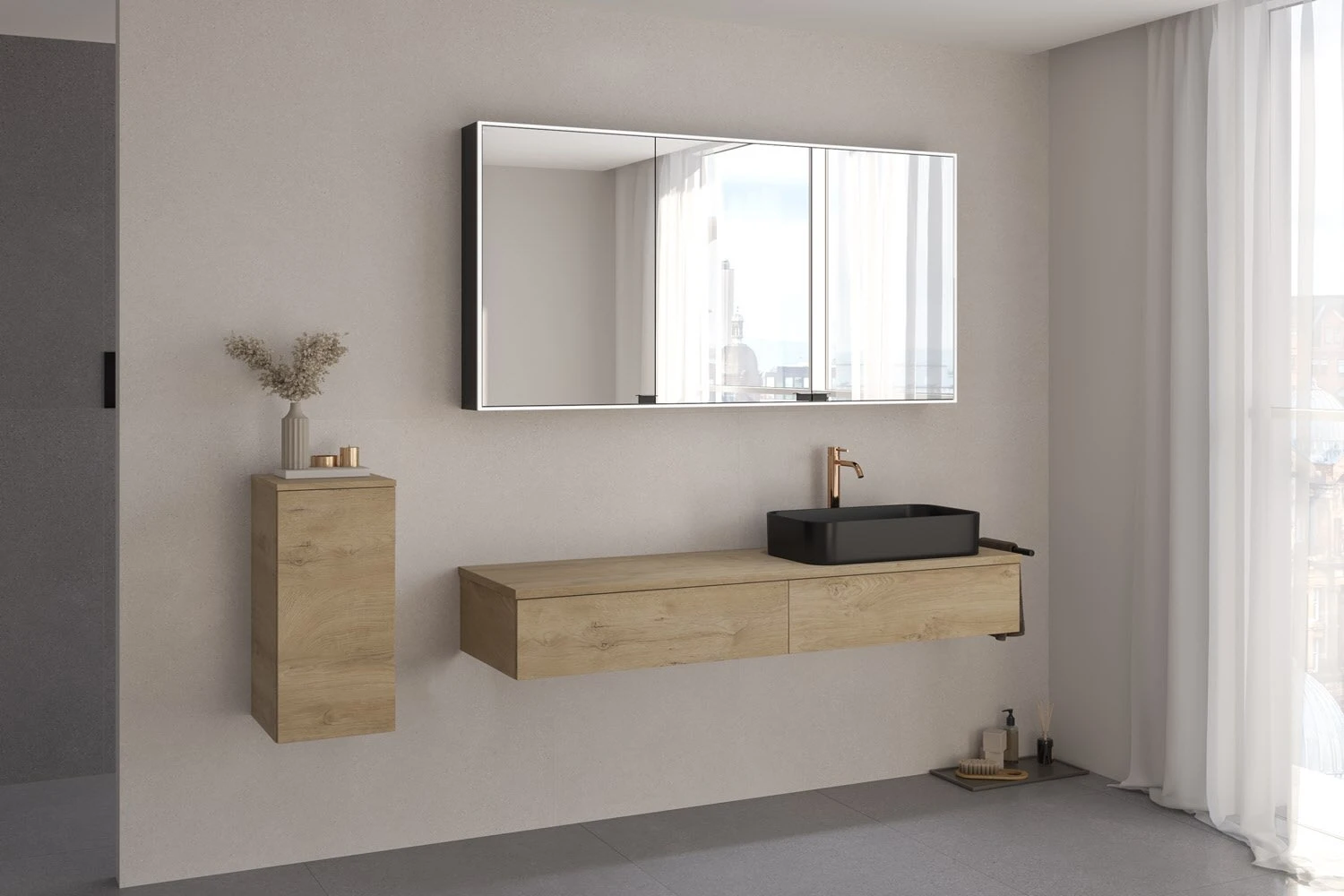 Der Waschtischunterschrank mit Siphonausschnitt kann links oder rechts montiert werden.
