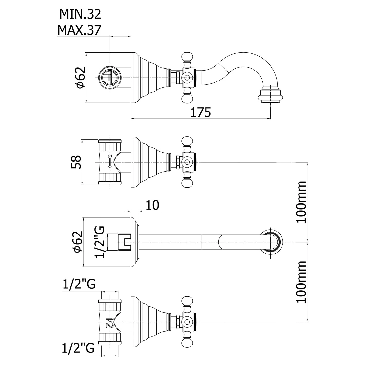 Kronenbach IOTA 2.0 Dreiloch-Waschtisch-Wandarmatur 17,5 cm