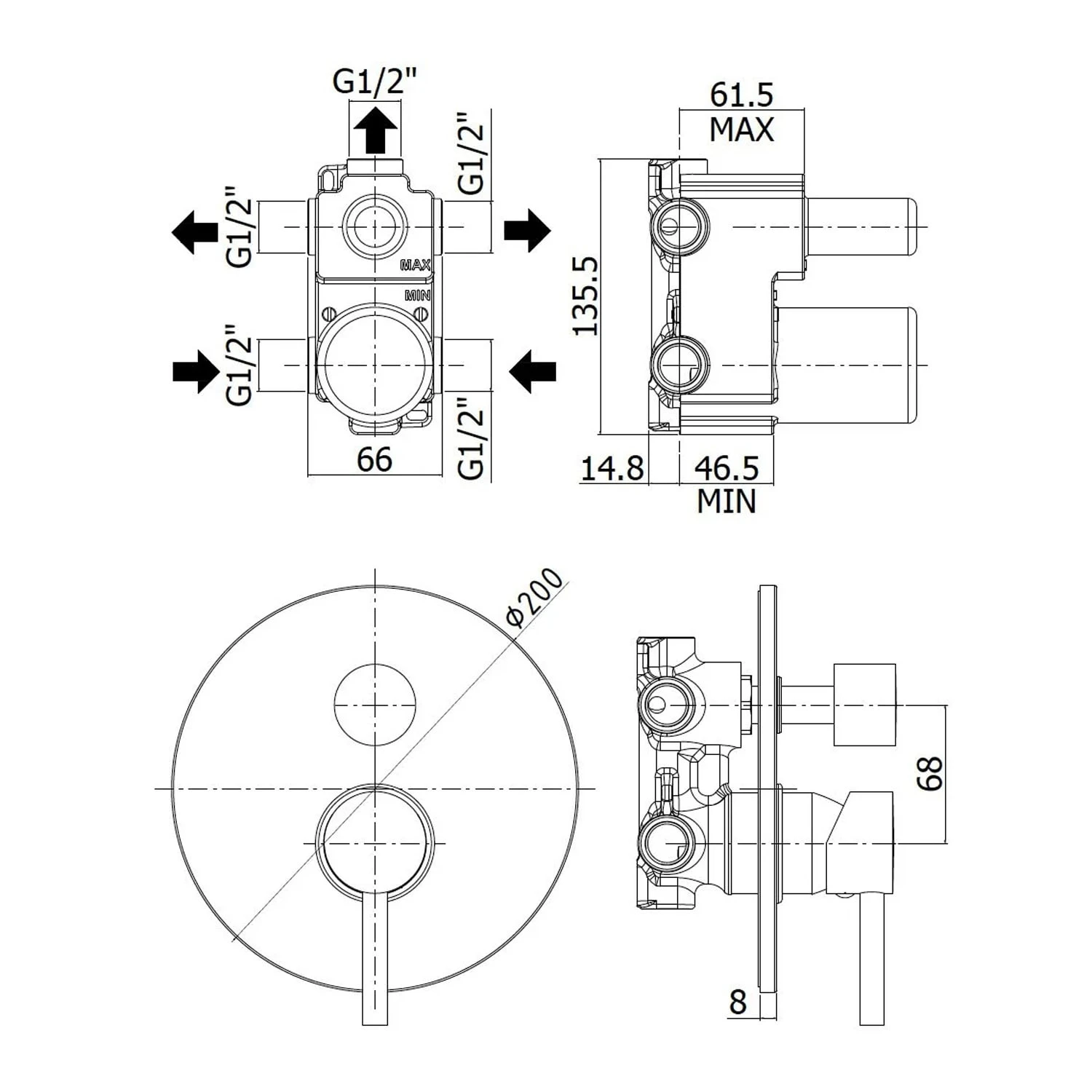 Kronenbach Lima 2.0 Black Unterputzarmatur mit 3-Wege Umsteller