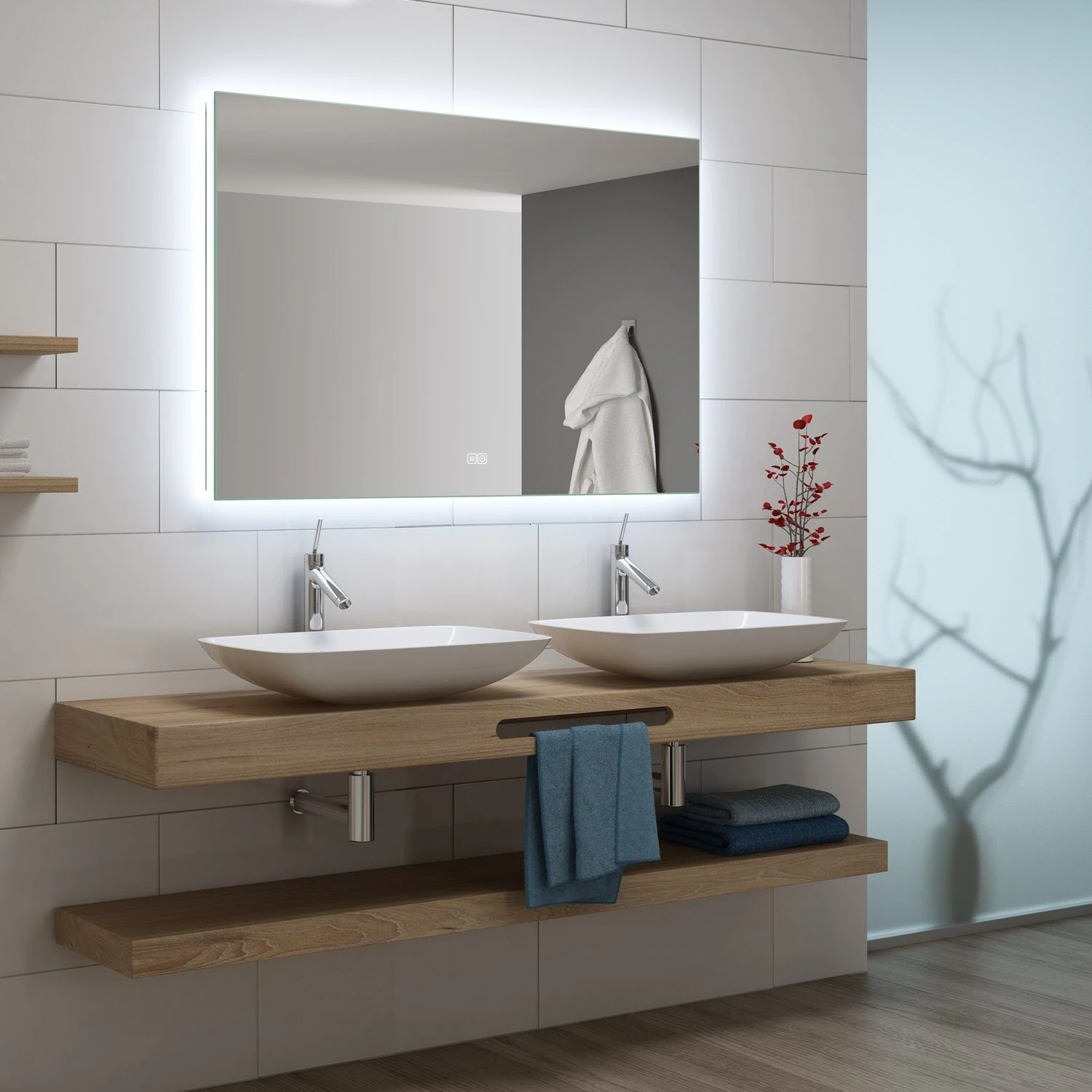 - LED-Backlight (Stimmungslicht) um den gesamten Spiegel