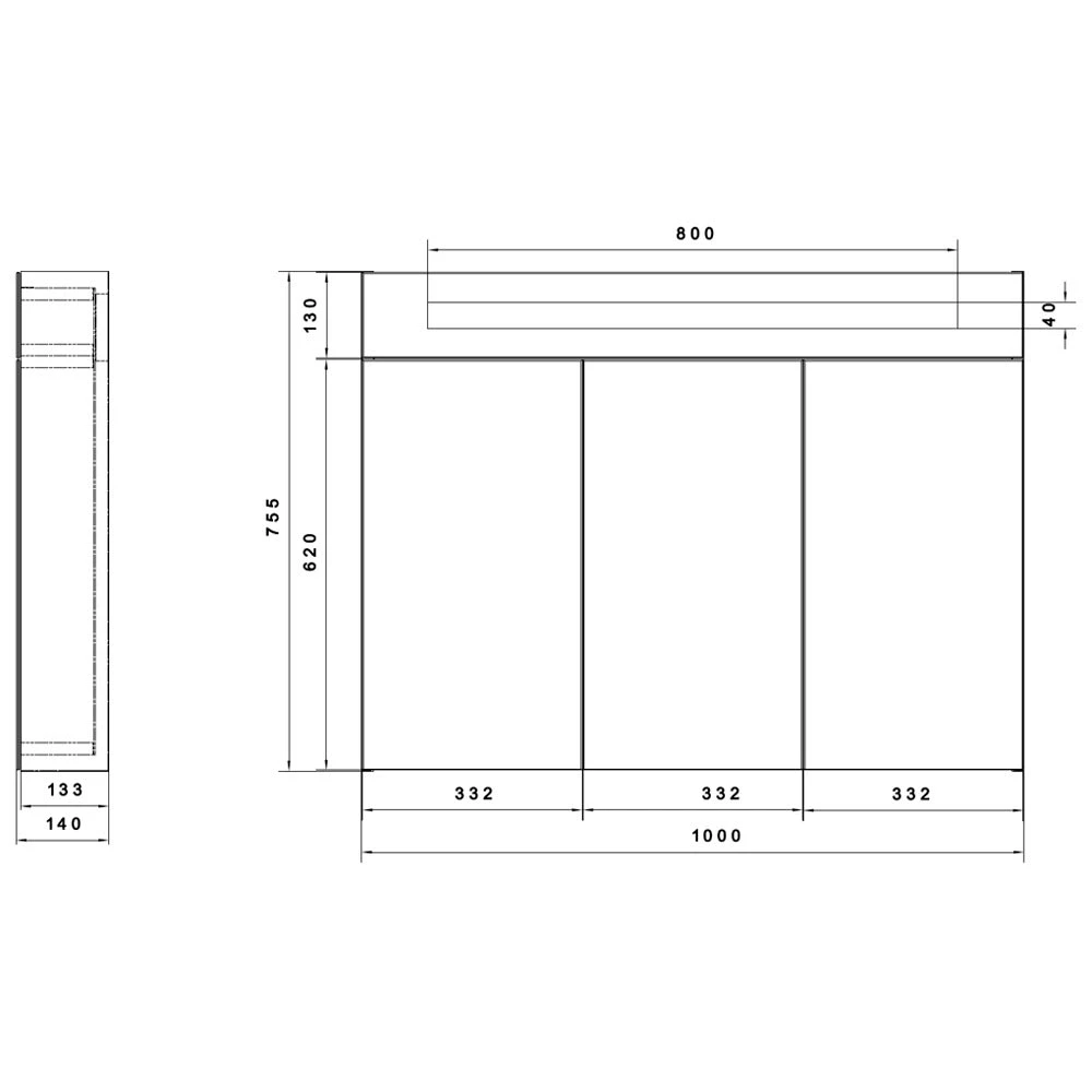 Kronenbach Plana Spiegelschrank 100 x 14 x 75,5 cm, mit 3 Türen und satiniertem Lichtausschnitt oben