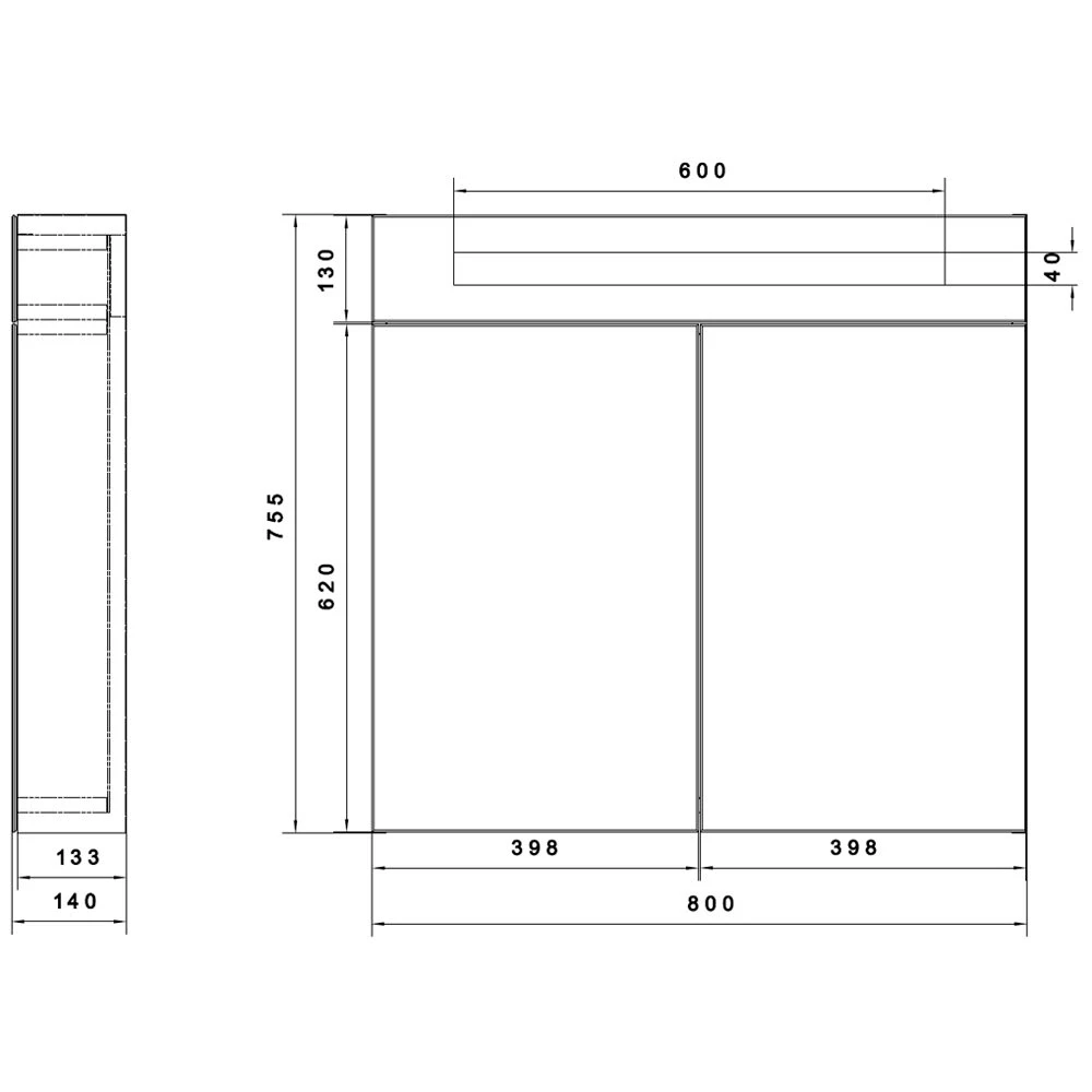 Kronenbach Plana Spiegelschrank 80 x 14 x 75,5 cm, mit 2 Türen und satiniertem Lichtausschnitt oben