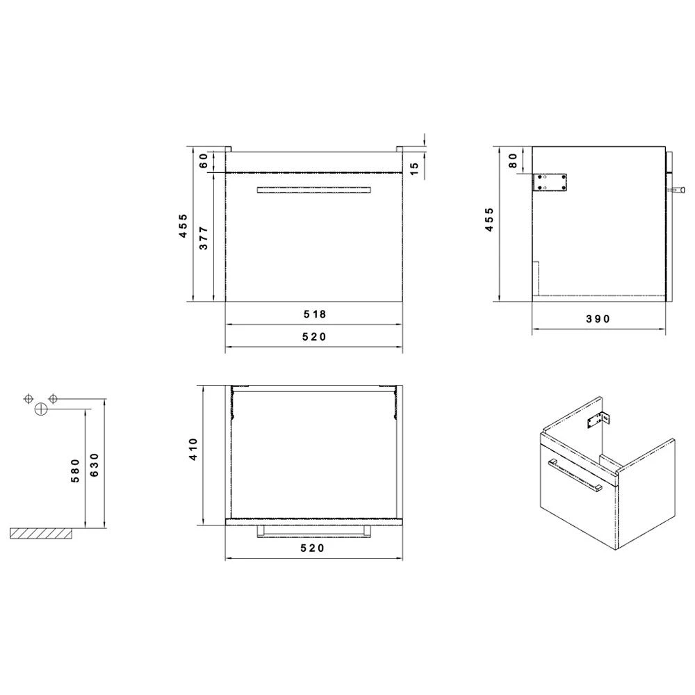 Kronenbach Plana Waschtischunterschrank 52 cm mit 1 Auszug