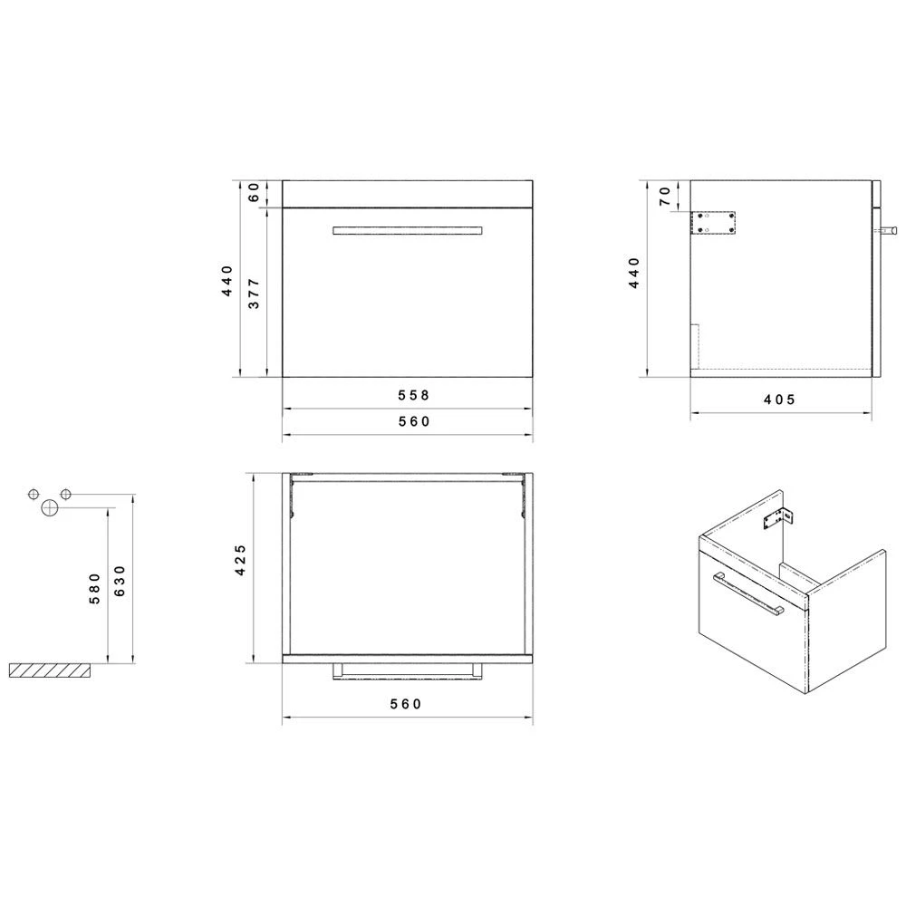 Kronenbach Plana Waschtischunterschrank 55 cm mit 1 Auszug