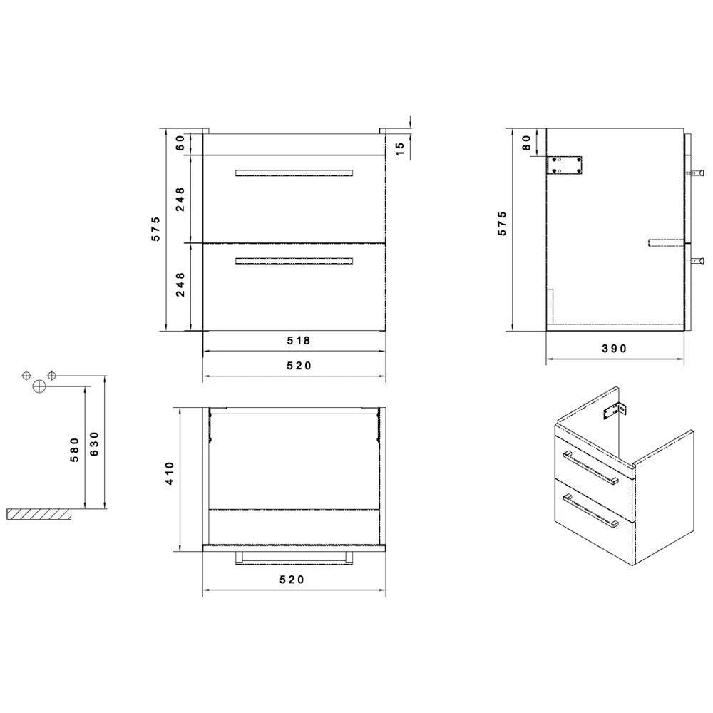 Kronenbach Plana Waschtischunterschrank 60 cm mit 2 Auszügen