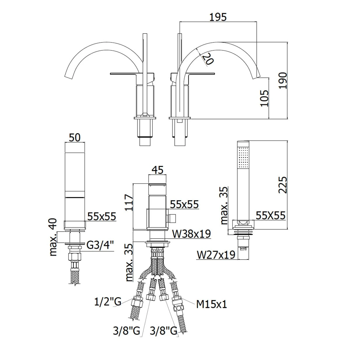 Kronenbach Quara 2.0 3-Loch Wannenrandarmatur
