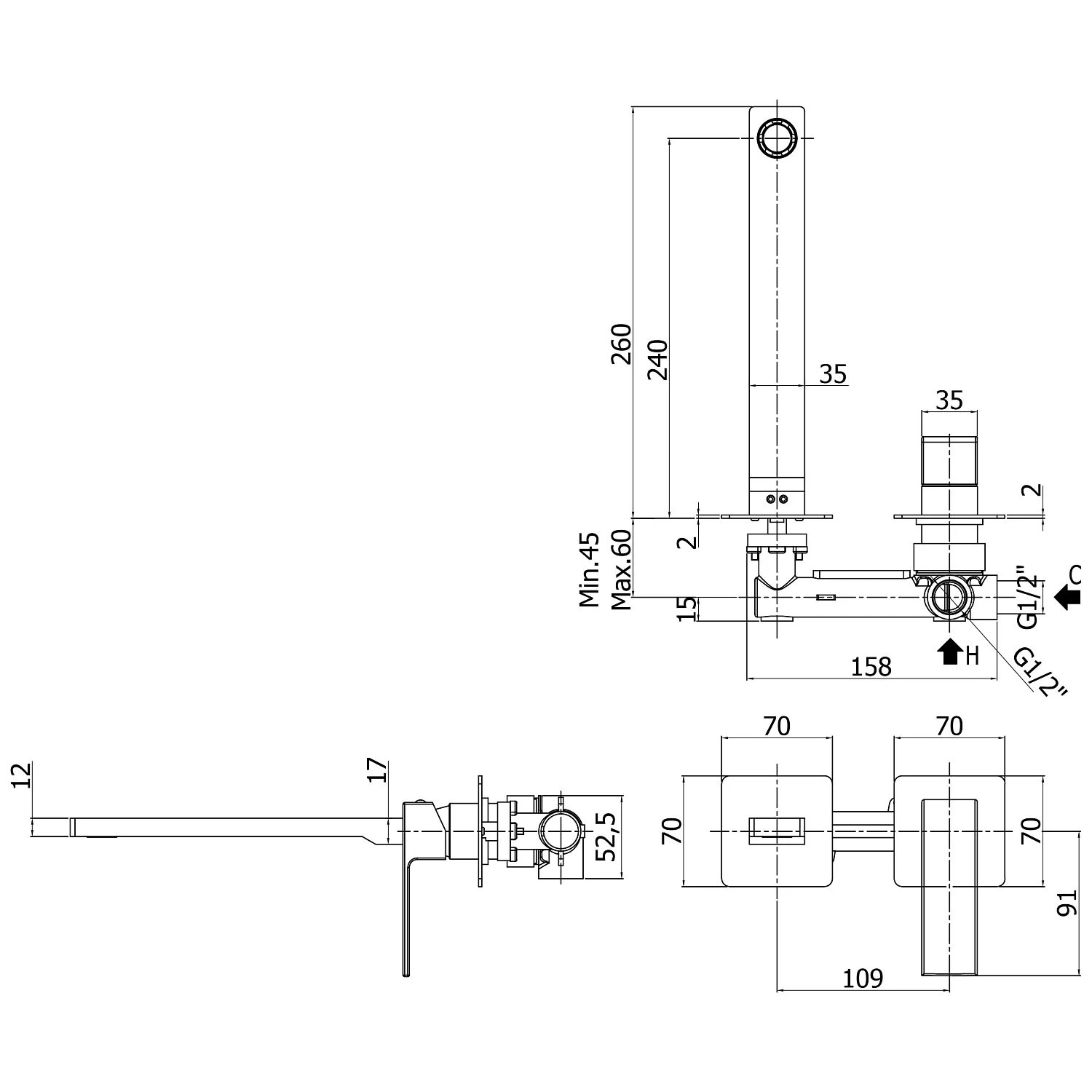 Kronenbach Quara 2.0 Black Waschtisch-Wandarmatur Ausladung 24 cm inkl. Grundkörper