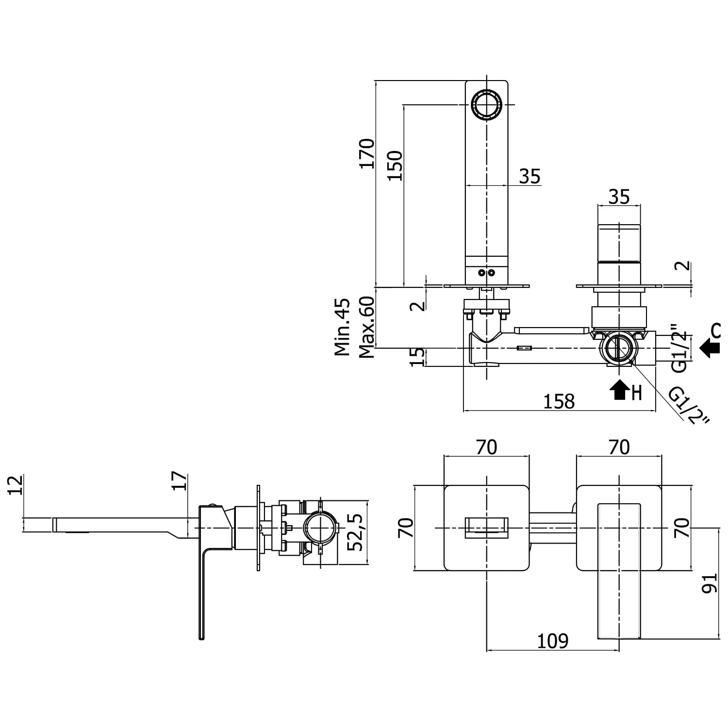 Kronenbach Quara 2.0 Waschtisch-Wandarmatur Ausladung 15 cm inkl.Grundkörper
