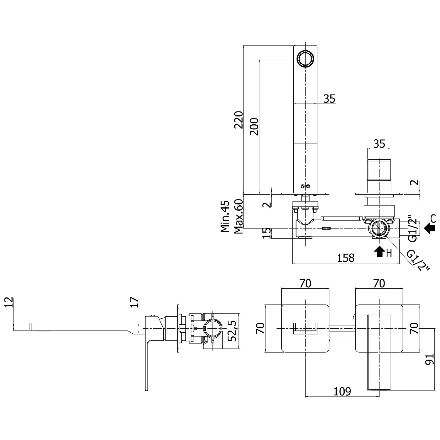 Kronenbach Quara 2.0 Waschtisch-Wandarmatur Ausladung 20 cm inkl. Grundkörper