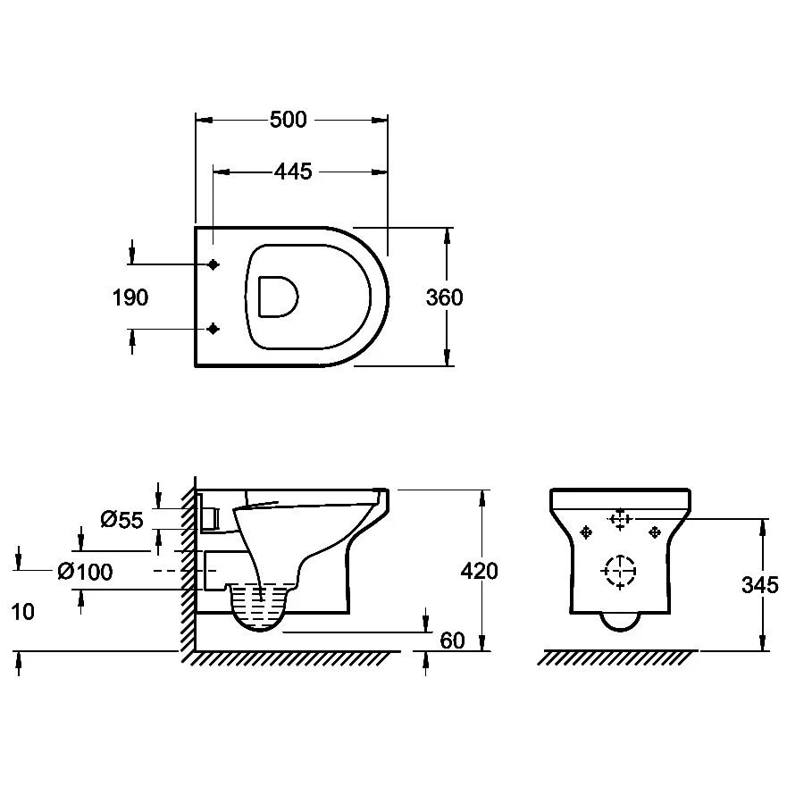 Kronenbach Round Wand-WC spülrandlos Art.: KB99710TU: