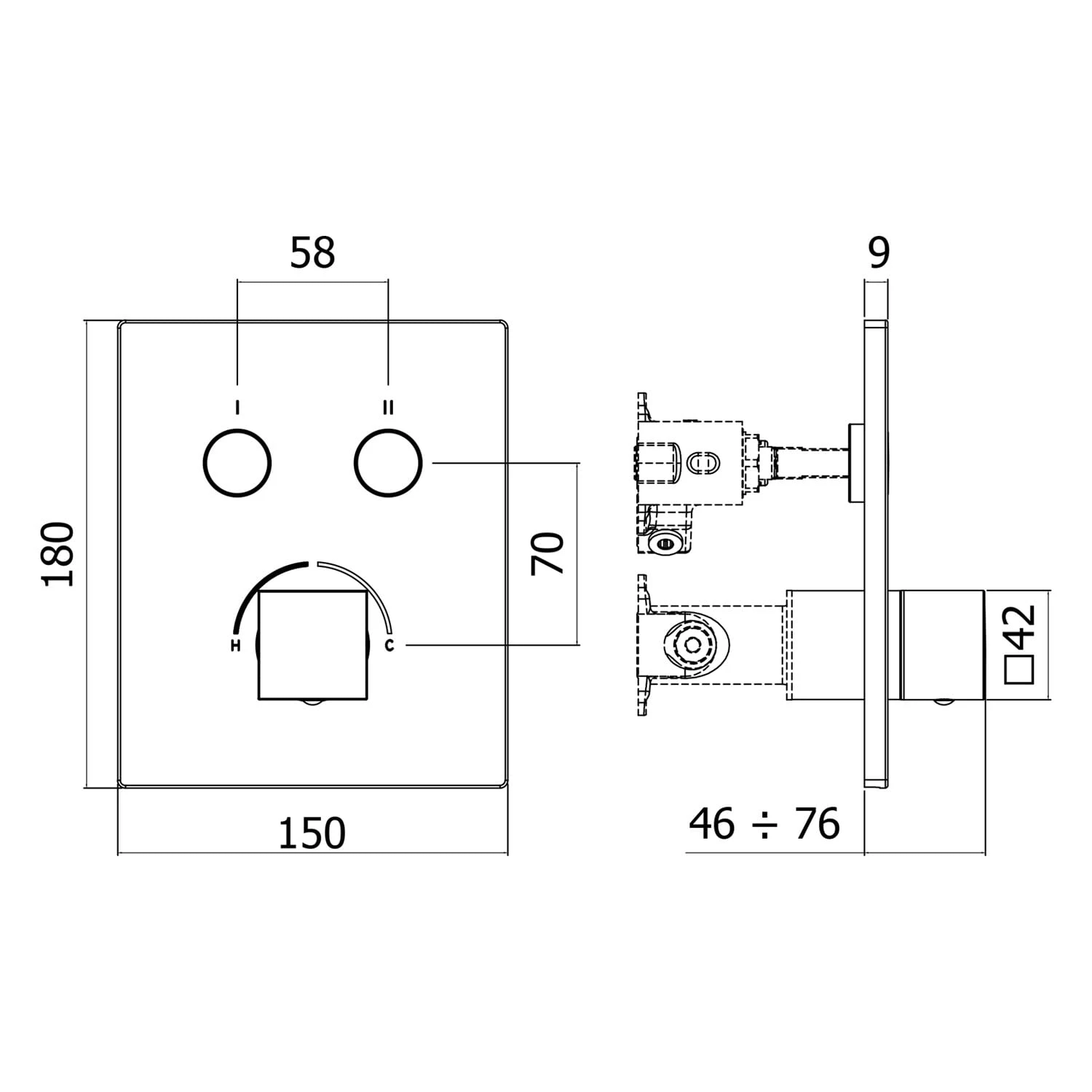 Kronenbach Smart Push Unterputz-Mischer für 2 Verbraucher, eckige Ausführung