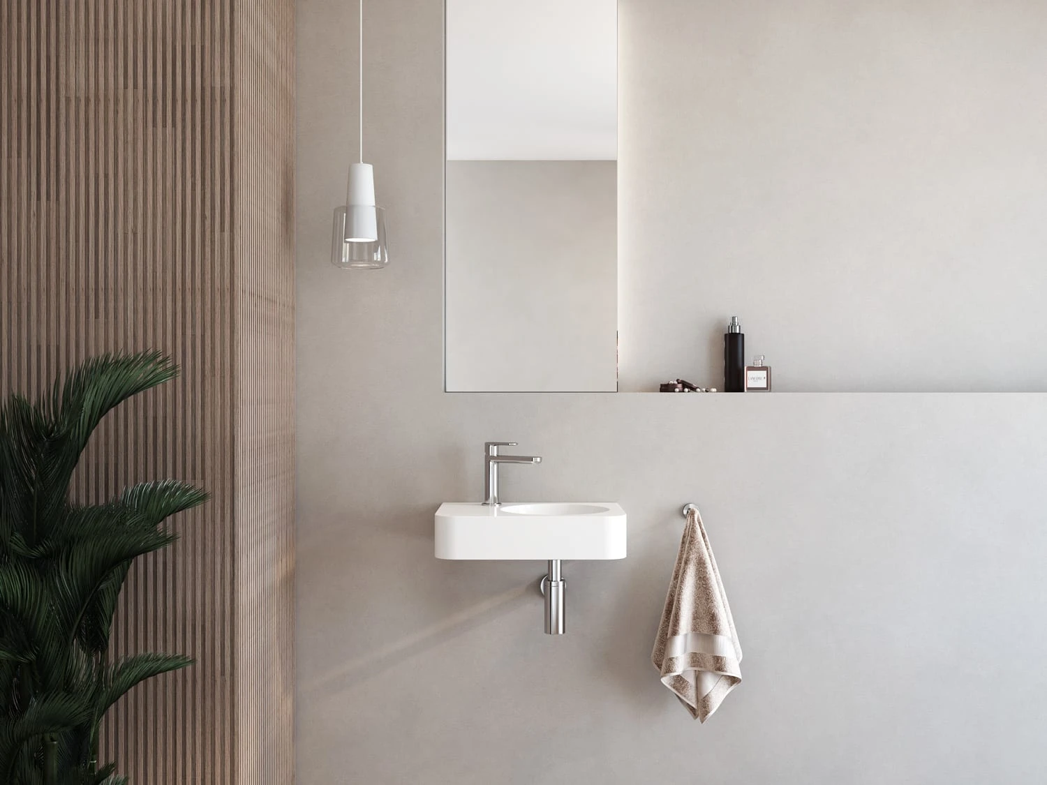 Kronenbach Stone Handwaschbecken 38 X 19 Cm Mit Handtuchhalterung, Becken Links Mit Hahnlochbohrung