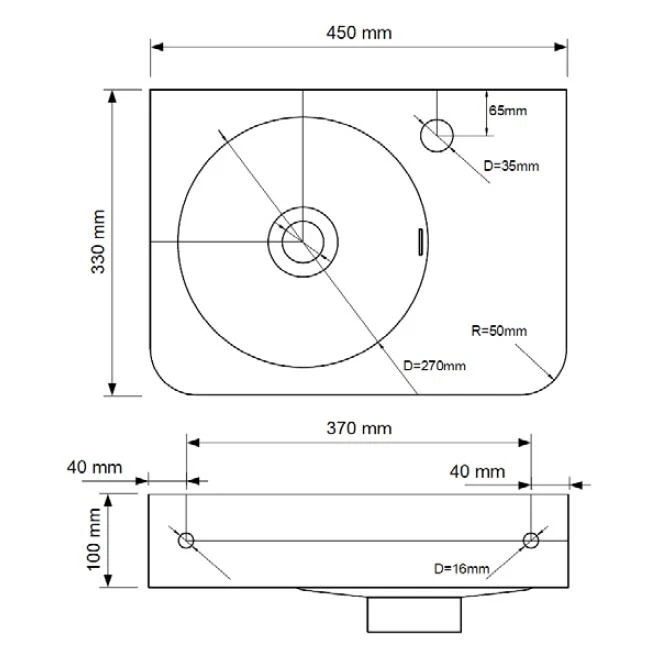 Kronenbach Stone Handwaschbecken 45 x 33 cm mit Handtuchhalterung, Becken links mit Hahnlochbohrung