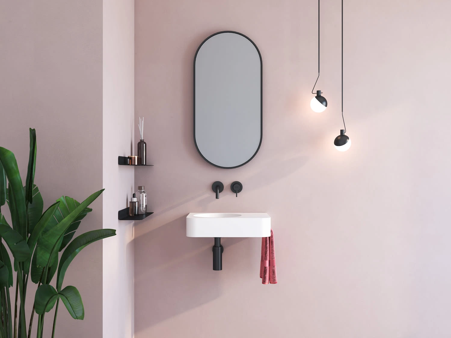 Kronenbach Stone Handwaschbecken 45 x 33 cm mit Handtuchhalterung, Becken links ohne Hahnlochbohrung
