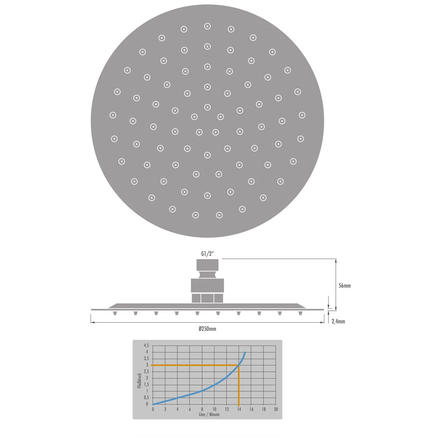 - Durchflussmenge bei 3 Bar ca. 15 Liter pro Minute